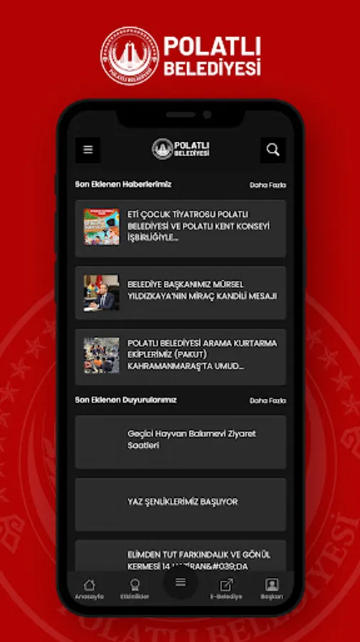 It is designed in such a way that you can quickly get news, announcements and other information about the Municipality of Polatlı.