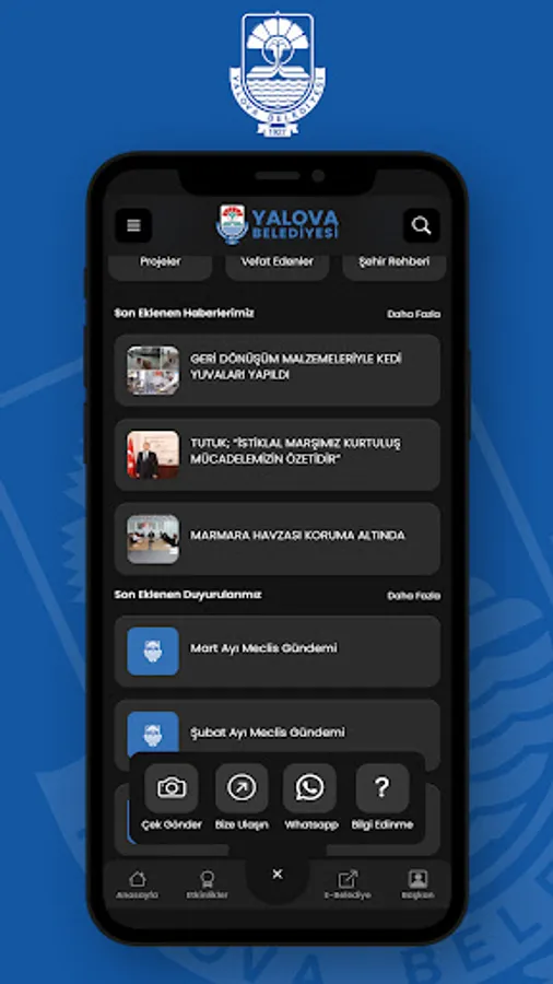 It is designed in such a way that you can quickly get news, announcements and other information about Yalova Municipality.