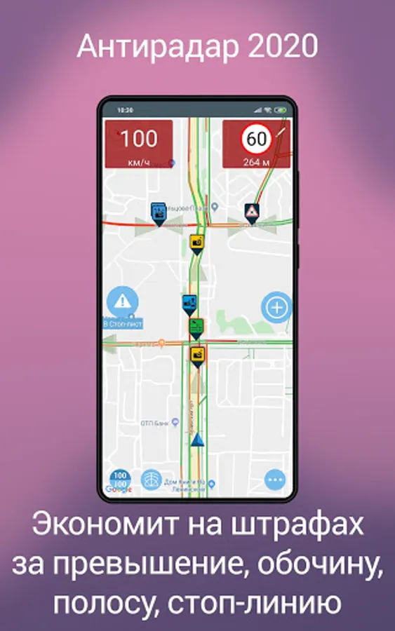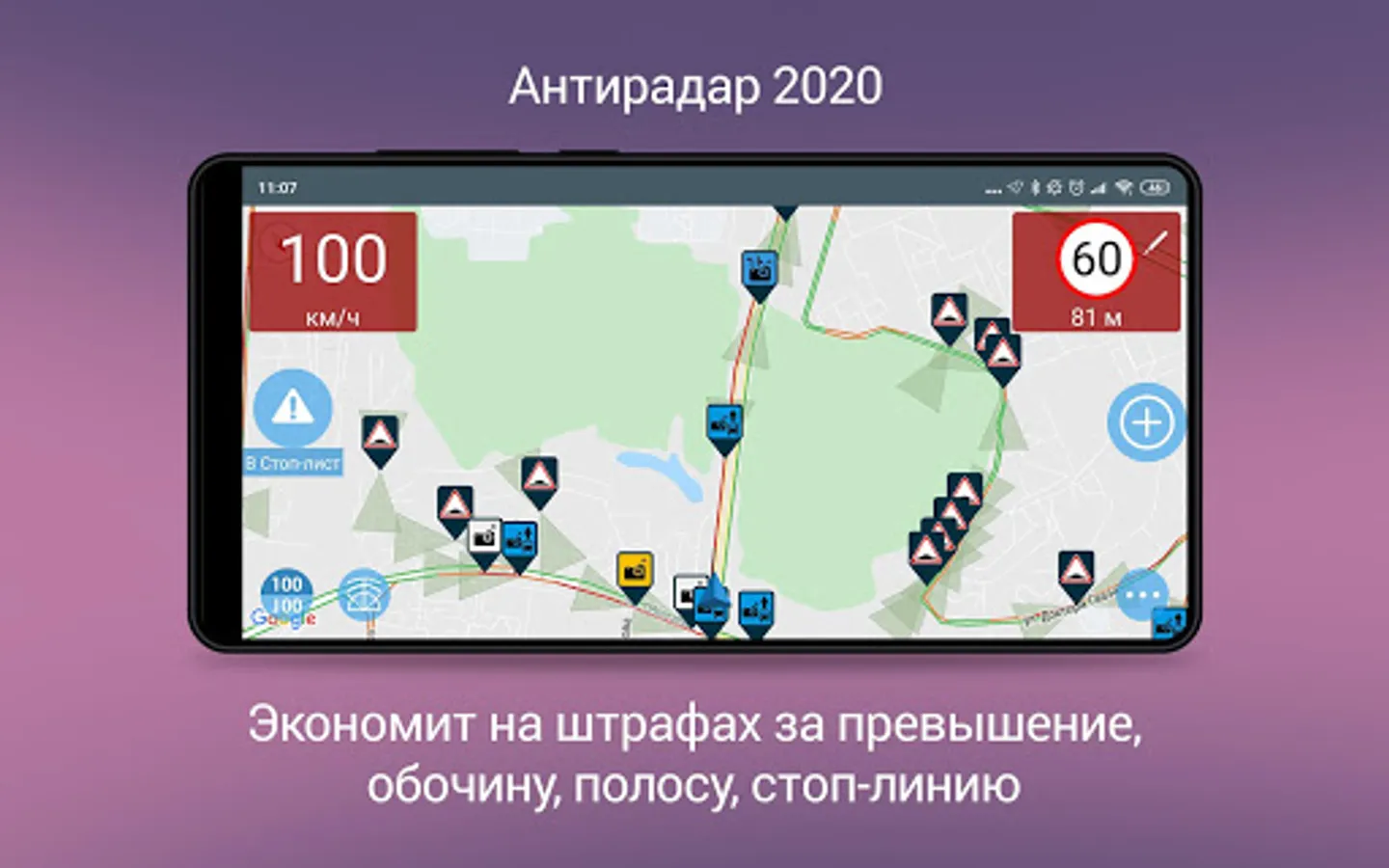 Antiradar M warns about all types of traffic police cameras fixing traffic violations (Avtodoria, Strelka, AvtoUragana, Arena, Chris, etc.).