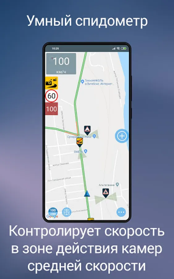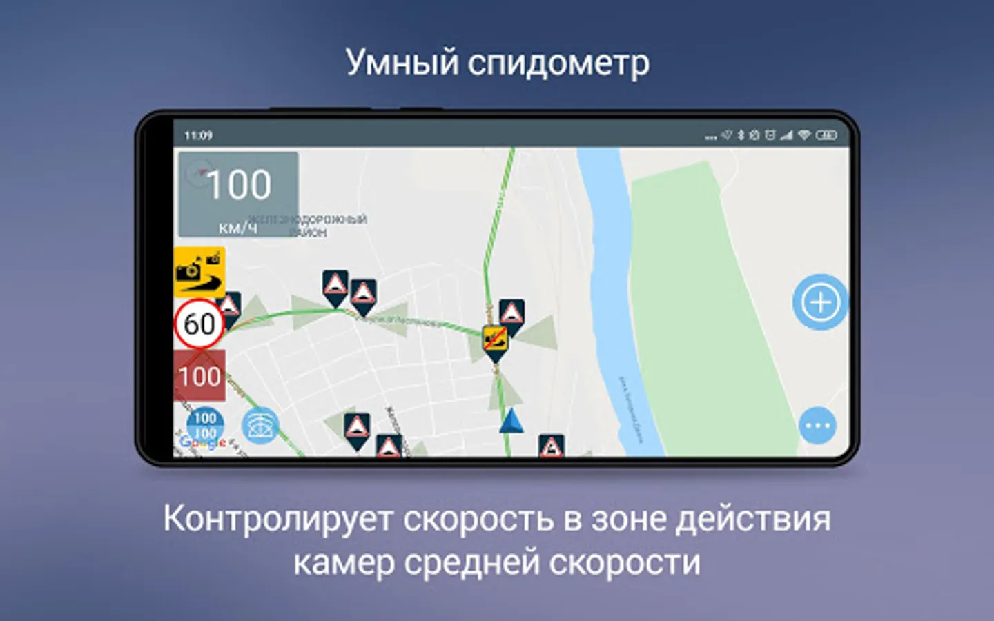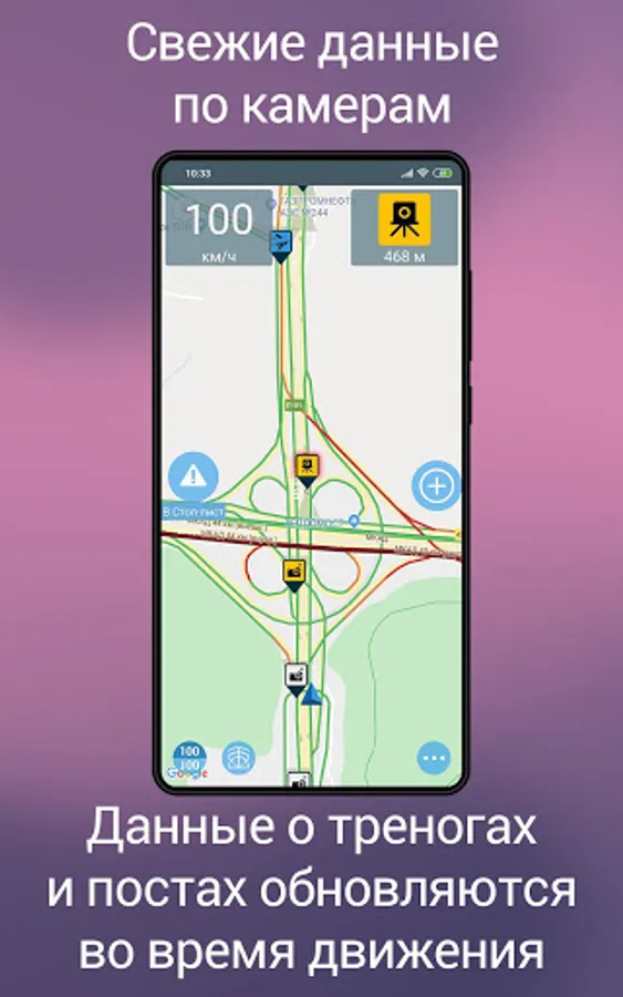Antiradar M works in the background, simultaneously with navigator programs. Warns about cameras by voice via Bluetooth, phone speaker, AUX.