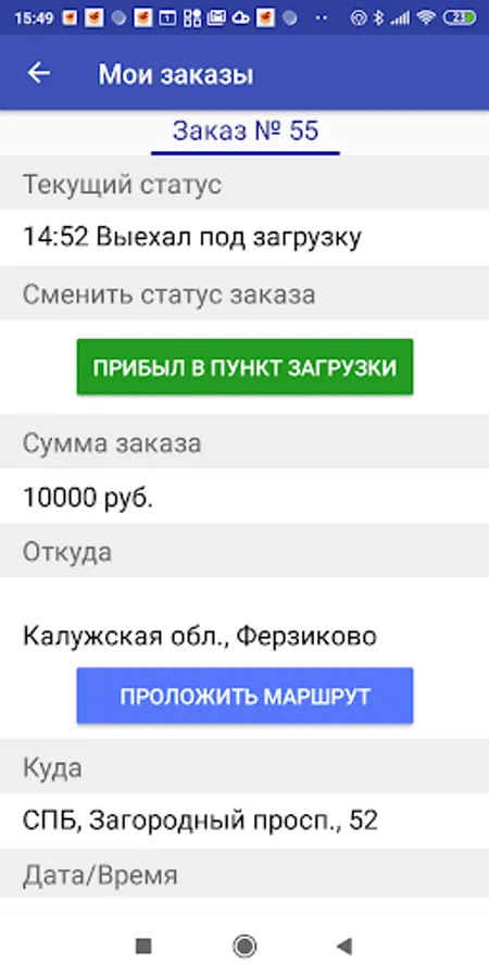 Application for drivers service Cargodil. Allows you to take orders, execute orders, send reports on the progress of order steps and view the history of completed orders