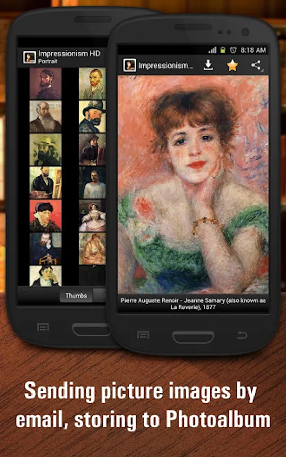 App gives you a unique possibility to always have access to the best works of the Impressionist artists as well as to their biographies.