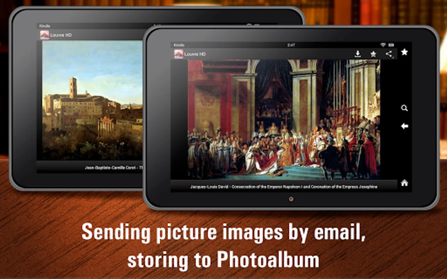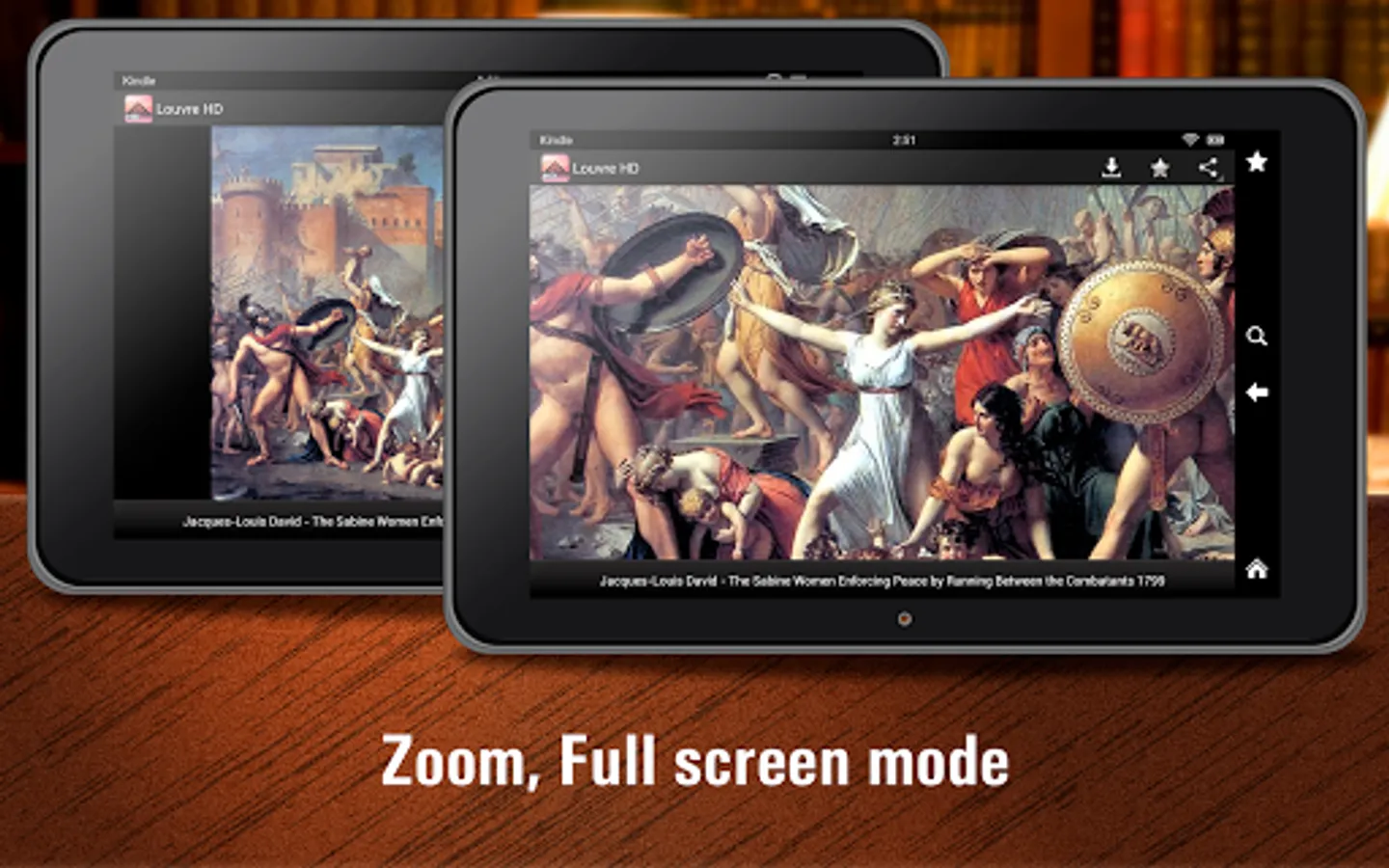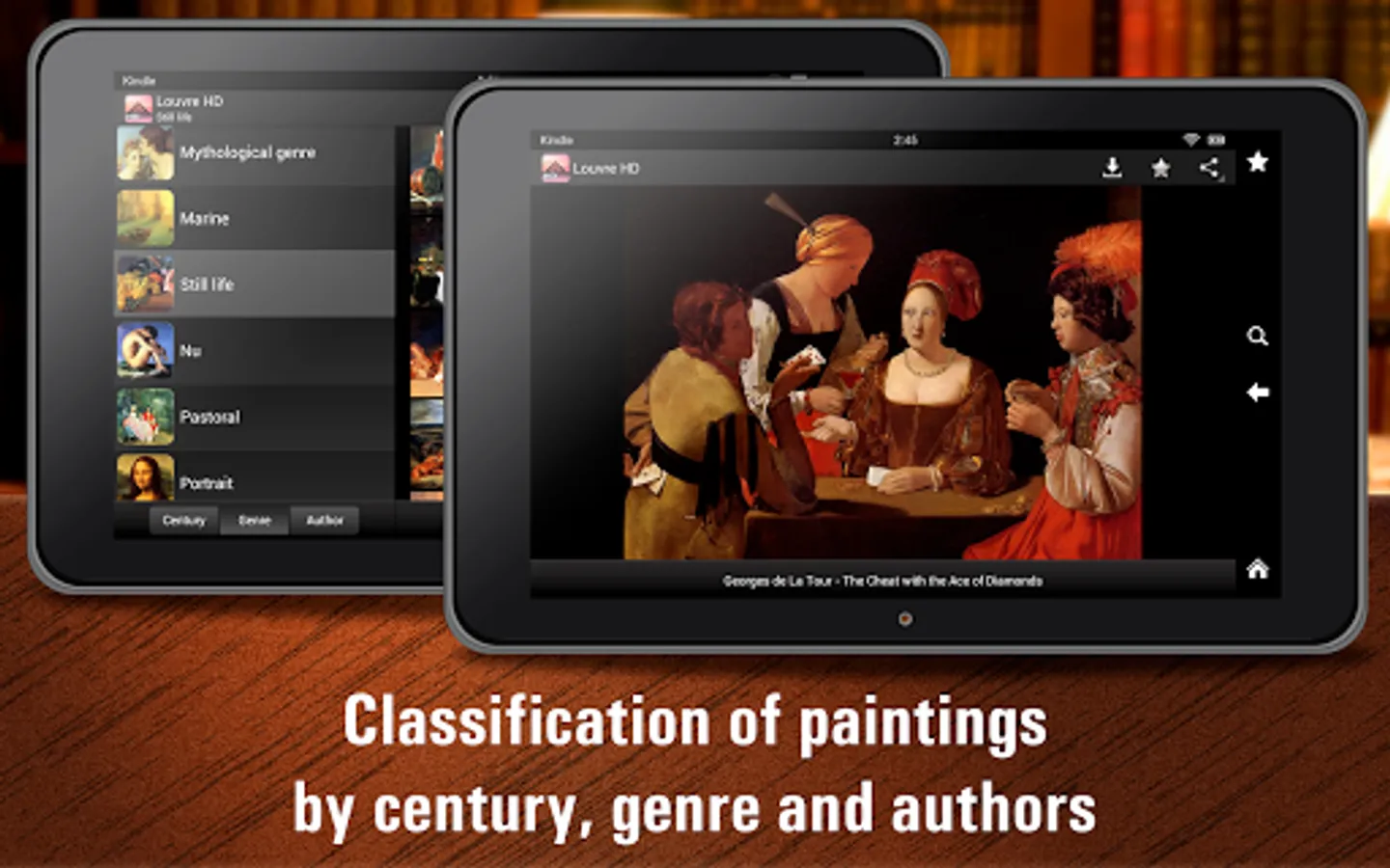 The application contains a collection of 2300 paintings of the Louvre Museum. Here you will find the works of Raphael, Rembrandt, Da Vinci, Veronese, Delacroix and many other eminent masters of painting.