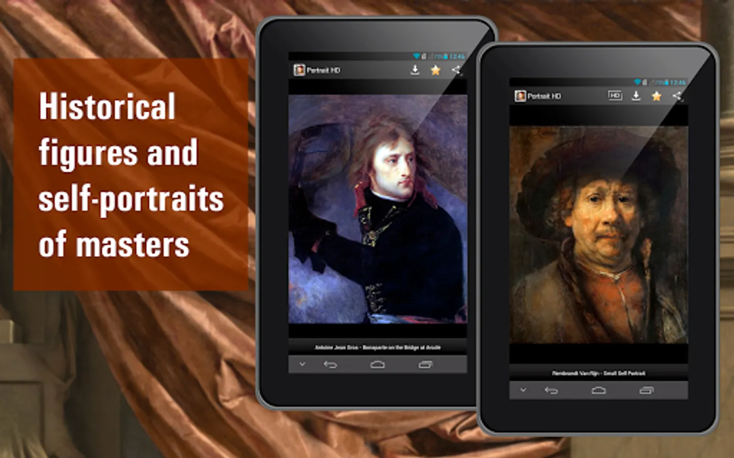 Use all the visual advantages of your device with the "Portrait painting HD"! This is the best collection of portraitures ever done in HD quality. Download our app and joint to the high art!