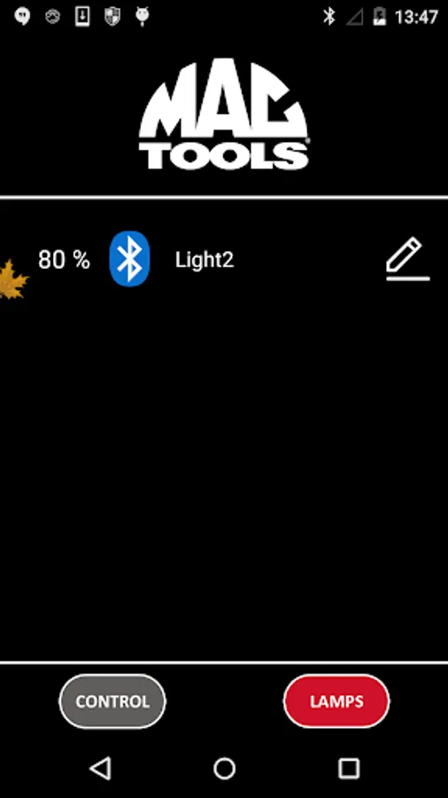 2. On the “Lamps” screen the user may connect/disconnect the light from Bluetooth and change the name of the light.
