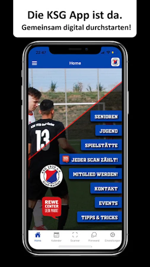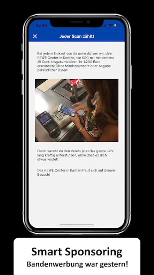You can even support your club financially by using the integrated scanner to scan the QR code at the checkout when shopping at the sponsor REWE Center in Karben. Without additional costs and without providing personal data!