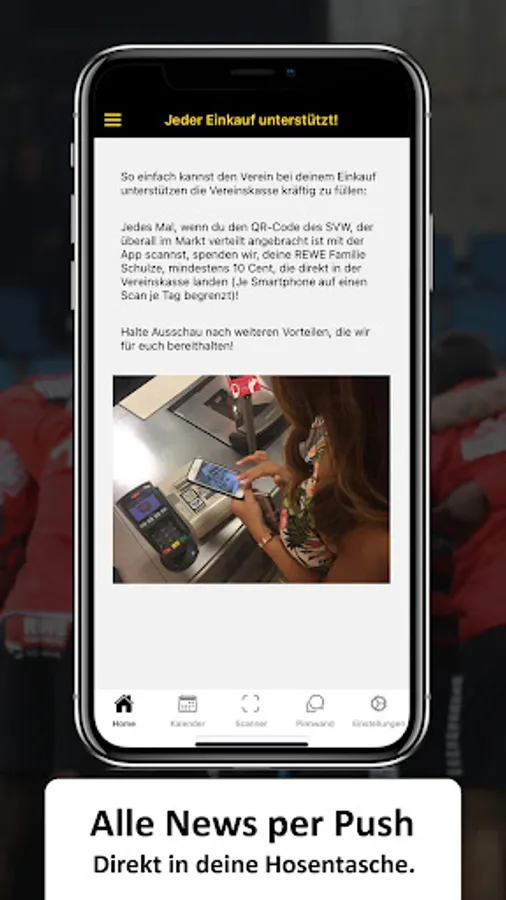You can even support the association financially by scanning the QR code at the checkout with the integrated scanner when shopping with our sponsor REWE Family Schulze. Without additional costs and without providing personal data!
