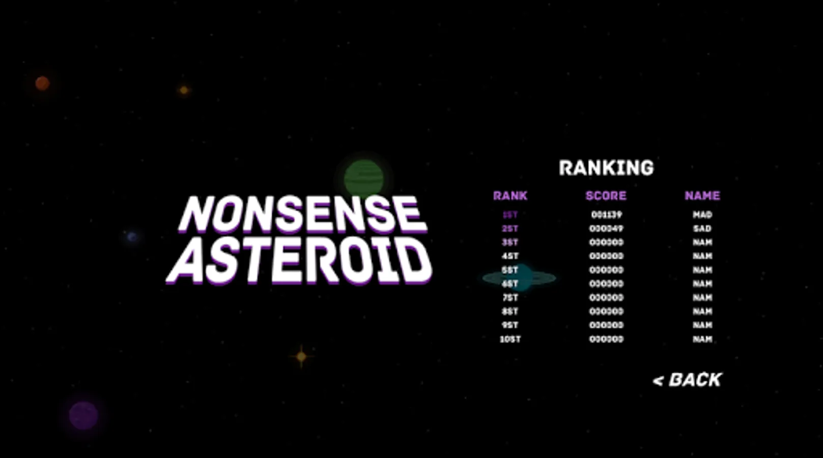 Nonsense Asteroid is a causal and engaging game, with simple and challenging gameplay! We have an online ranking!