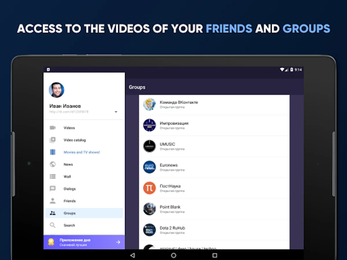 * This is not official application and we do not have any relations to the VK. Name and trademark VK are the property of copyright owners