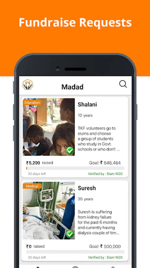 The fundraise requests are verified and approved by government approved NGO's before getting posted in the application.