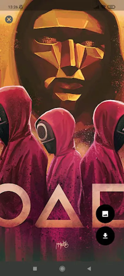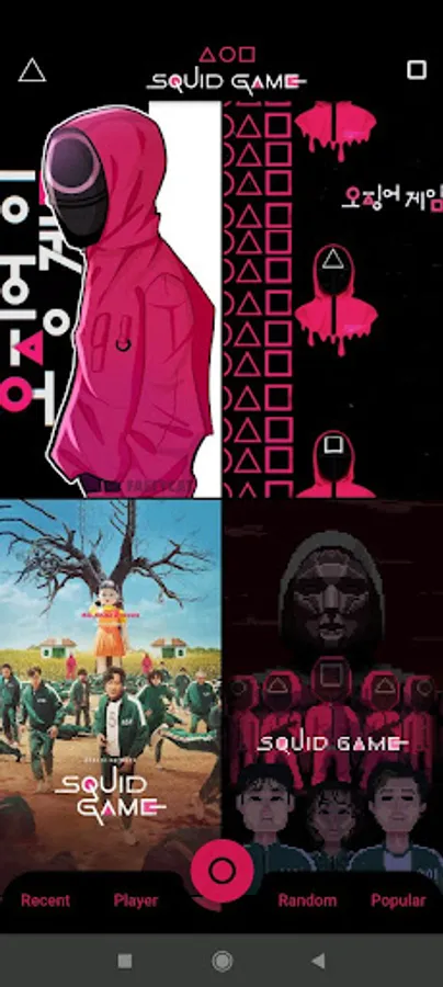 In the application, you can see the latest and popular images, or if you can't choose from so many beautiful images, you can try your luck and choose random squid game wallpapers. You can access pictures of Squid game players in a separate category.
