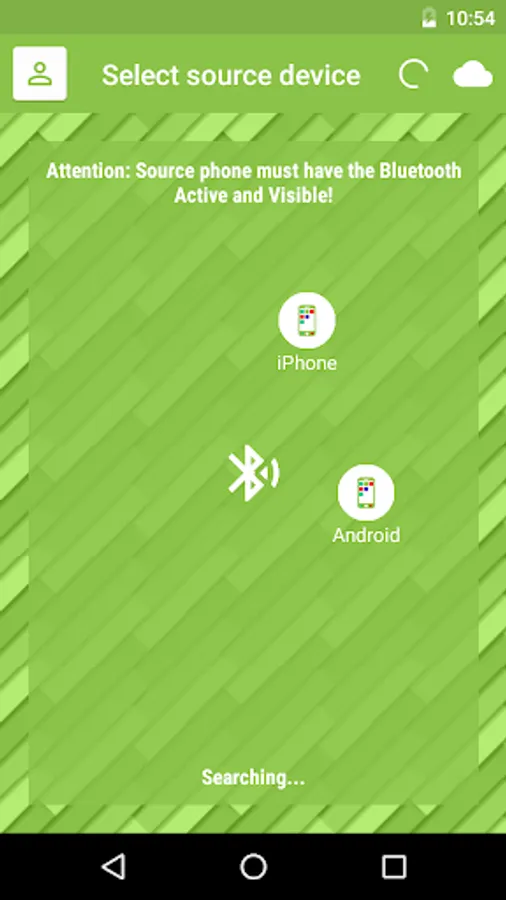 To move your contacts between phones we use Bluetooth! Remember to turn it on, on both devices, and make source phone visible, to allow the target device to discover it.