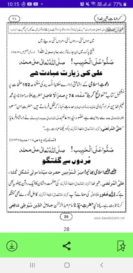 Ameer Ahle Sunnat Hazrat Allam Molan Muhammad Ilyas Qadir Attari ki likhi hoe kitab Karamaat Sher e Khuda bahut asan aur Fehrist ki sorat me parh sky gy.