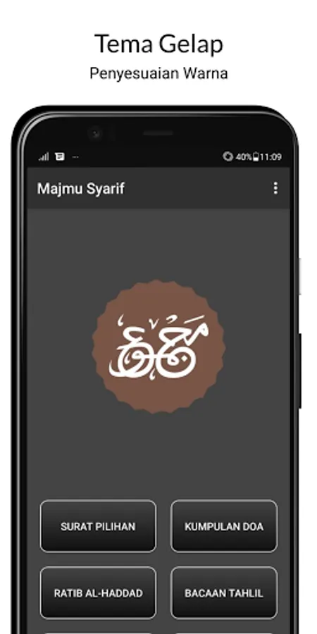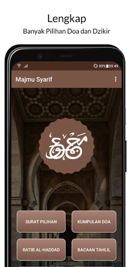 Majmu Syarif is an application that contains a collection of selected Surahs from the Qur'an such as Al Waqi'ah letters, Yasin letters, Al Kahf letters, and so on. Apart from that, there are also collections of prayers, prayers, and Tahlil recitations.