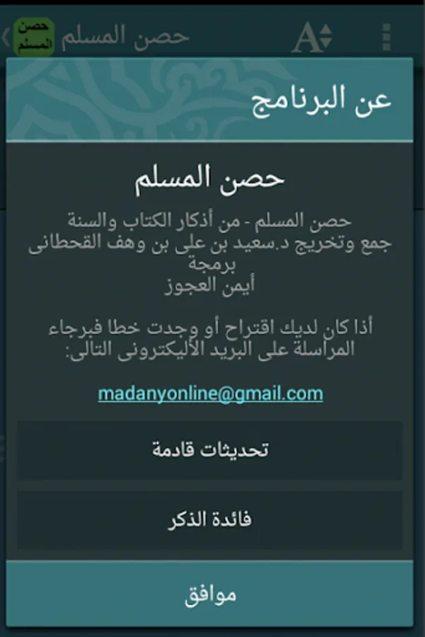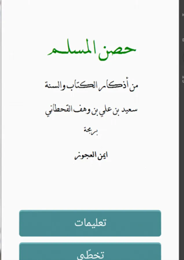 Fortress of the Muslim application building on the Fortress of the Muslim book of supplications and Sunnah of Sheikh Saeed Bin Ali Bin Al Qahtani OHV to face God without any publicity programs.