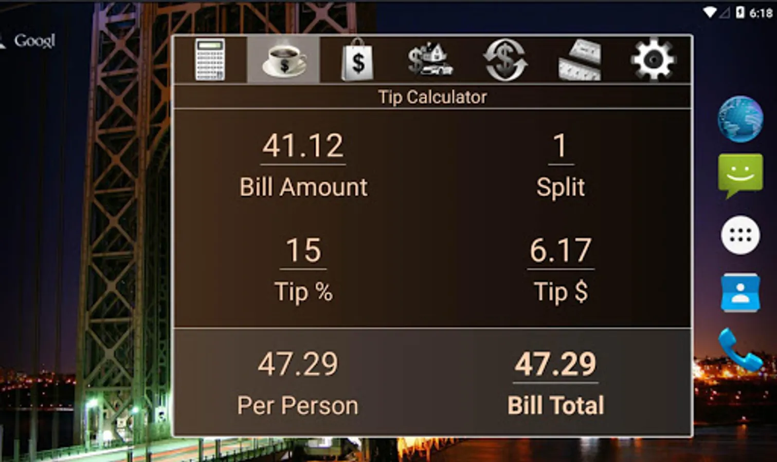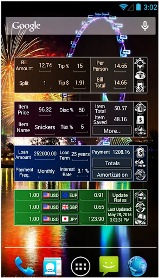 With this all in one calculator, you can switch between 6 calculators and converters (tip, discount, loan, currency and units) with the simple touch of a button, straight from your home screen!