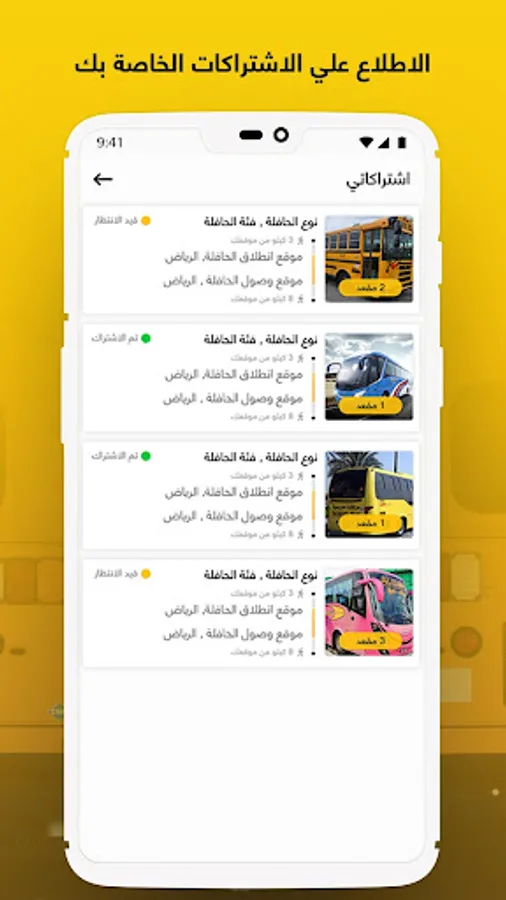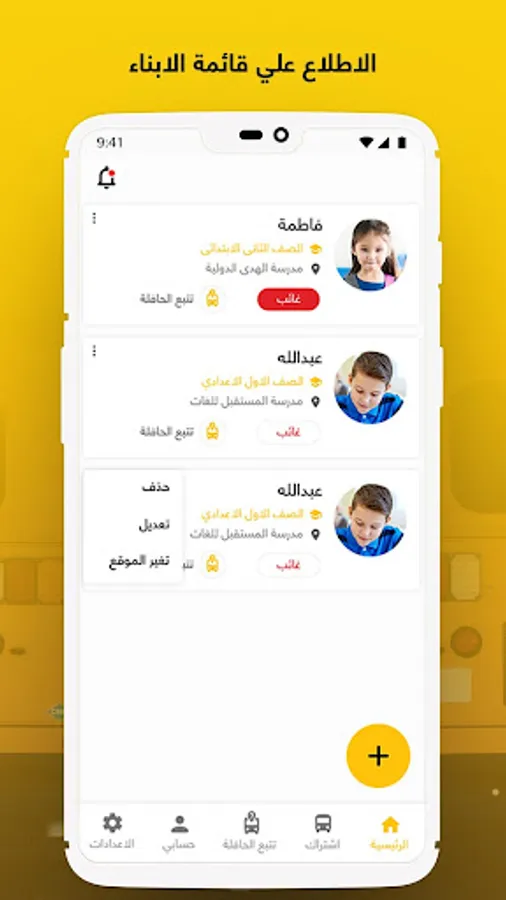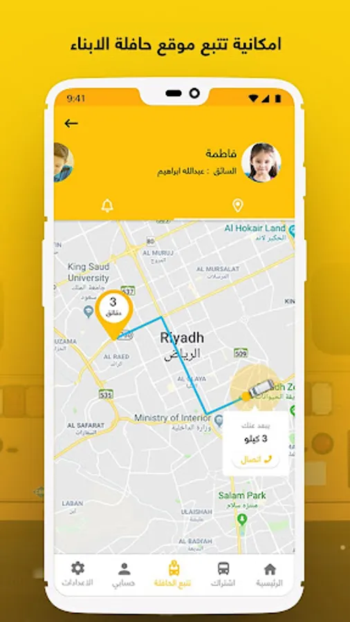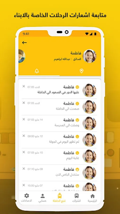 Buss tecc - School Transport Parents : instantly informs parents about the location of their children as they travel to and from school via notifications and alerts on their mobile phones. An alert arrives before the arrival of the bus at a predetermined distance to prepare their son to board the bus without wasting time. Parents are notified when their children get on or off the bus and when they arrive at school. The notification arrives with some information, such as the dates and times of when the children get on and off the bus, with the ability to retrieve this information.