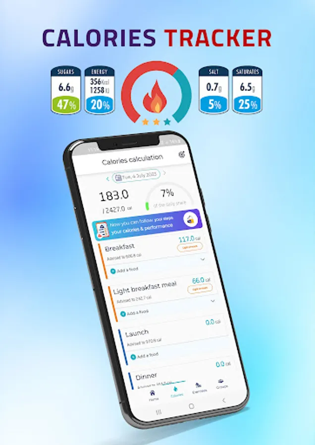 And A Surprise, a complete health regime for free to calculate the calories in your food, while providing an indicator to know the appropriate amount throughout the day