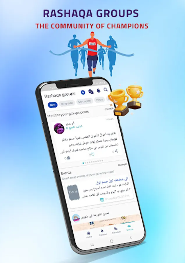 Discuss with your friends weight-loss tips, where competitive Rashaqa groups help you to chat with other group members to understand different ways to keep your form, exercising, and the proper diet, or the difficulties that you face in the Rashaqa application,