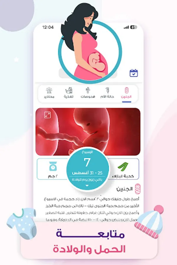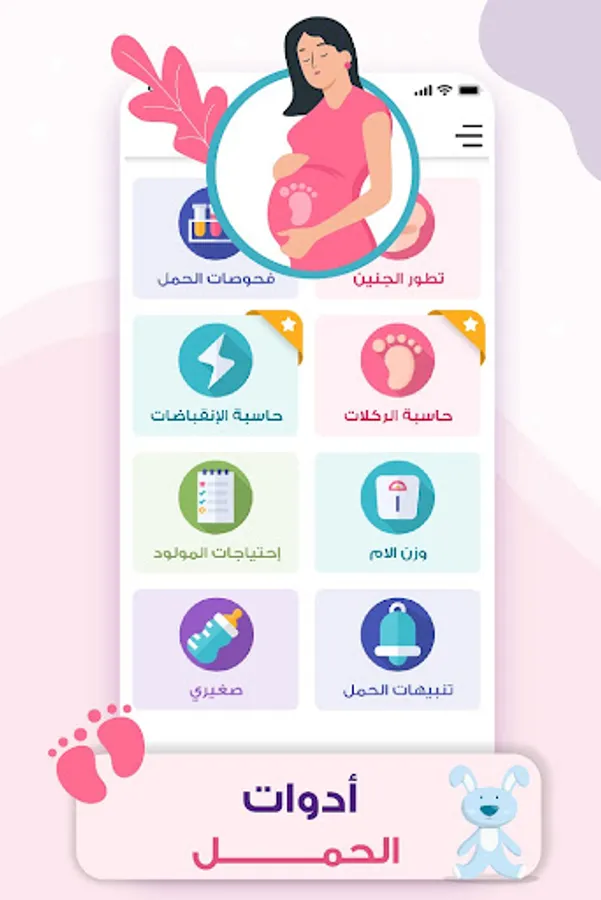 The most important pregnancy follow-up tools, including the mother's weight calculator, the kicking calculator, the contractions calculator, alerts for the most important necessary medical examinations, a safe pregnancy without difficulties, and nutritional tips.