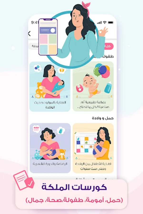 The Queen’s application includes: a menstrual cycle calculator, a pregnancy calculator, pregnancy follow-up, women’s and family medical consultations, specialized women’s courses.