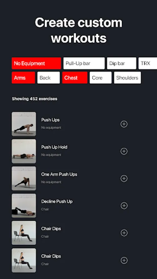 Choose workout duration and the targeted muscles (abs, legs, back,...), adapt it to your fitness level and goals, and even create your own workouts! The provided video guidance will help you execute the exercises perfectly. All of the workouts are designed by fitness experts.