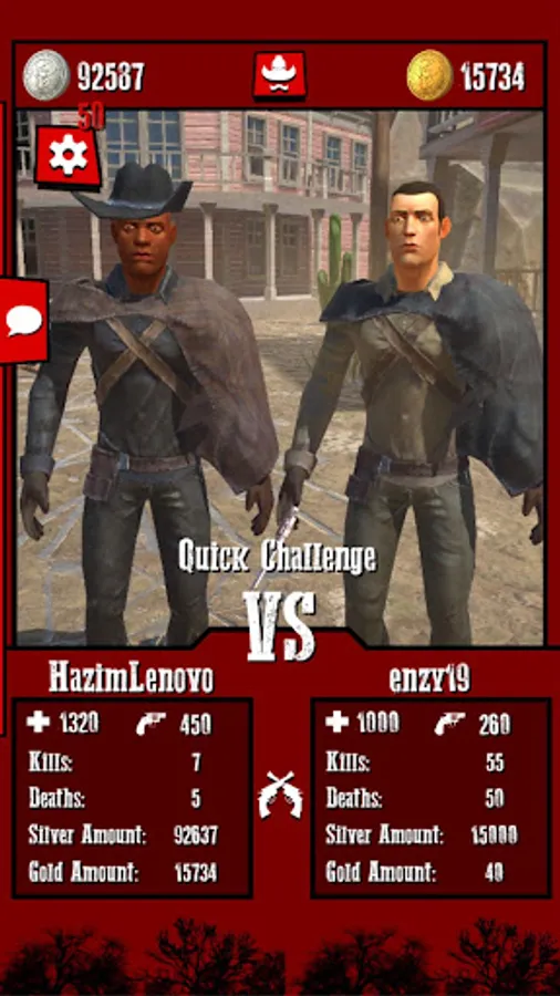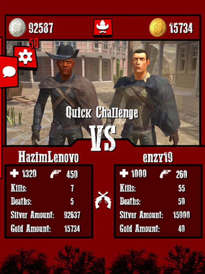 Quick Gun is an online player vs player (PvP) cowboy standoff game.