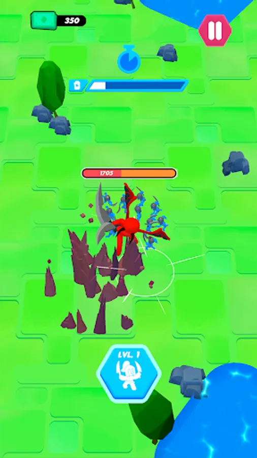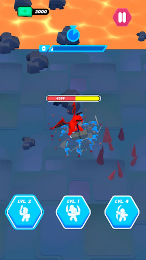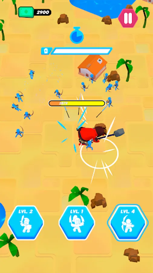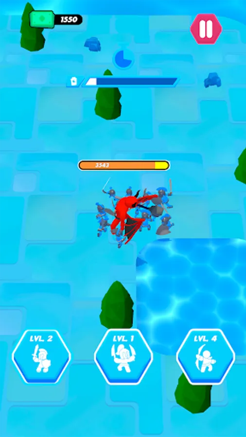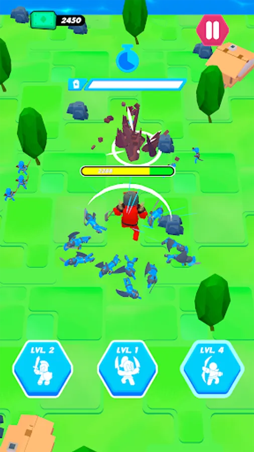 Accumulate buffs and upgrade your stats in each run. Between battles, level up your troops and craft the ultimate fighting force!