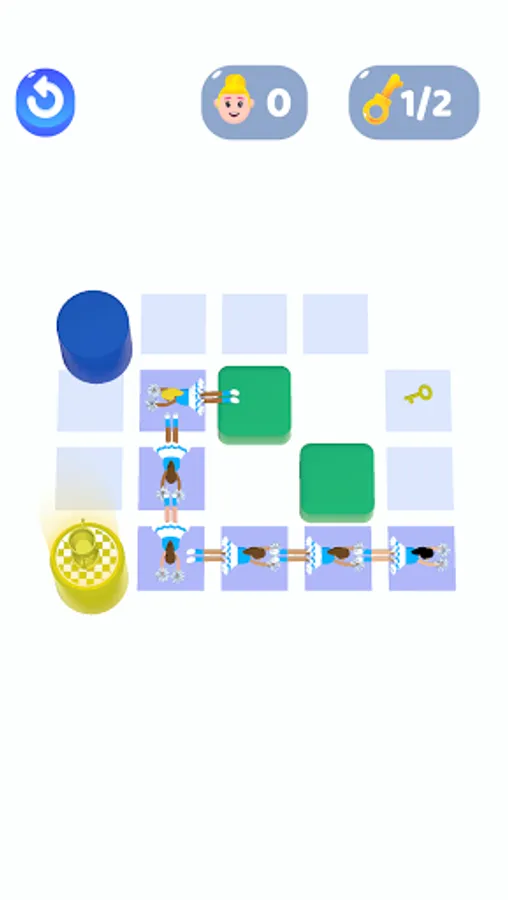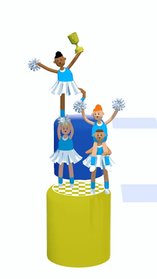 Drag the stack of cheerleaders to reach new platforms and get to the goal. BEWARE, you can only reach as far as the number of cheerleaders in your stack!