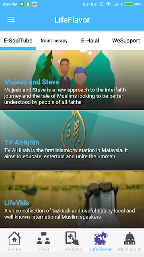 PeaceBeUponYou aims at helping users become better Muslims by bridging them to inspirational and educational content. Developed by Madcat World, PeaceBeUponYou app features daily quotes, videos, articles, du'as and zikir. The app also functions as a gateway to a variety of content of important topics such as Ramdan, faith, social interactions and halal ingredients. Users can keep track of prayer times wherever they are, and, search for crowdsourced nearby musollas and halal restaurants. The content is available in English, Bahasa Malaysia and Bahasa Indonesia.