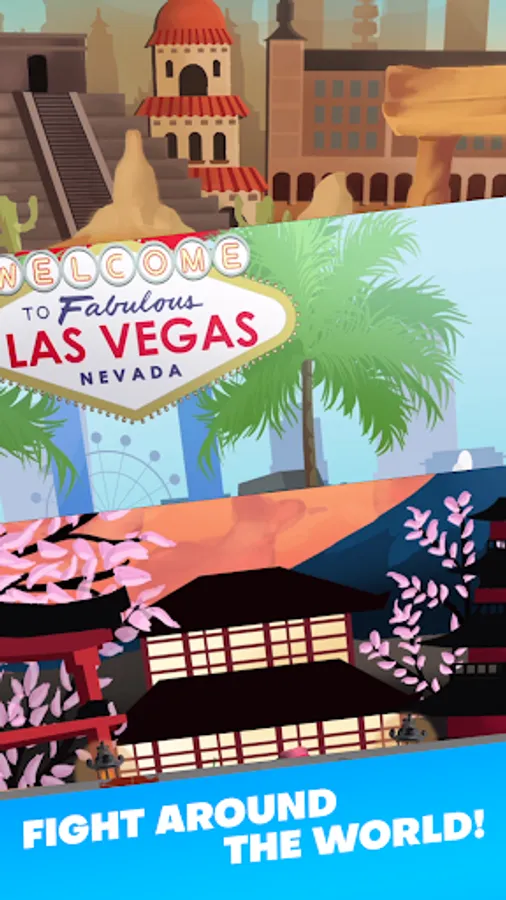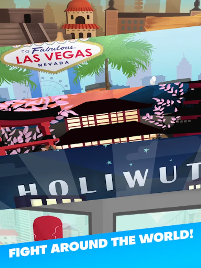 Fight your way to the top by traveling around the world to the top fighting destinations!