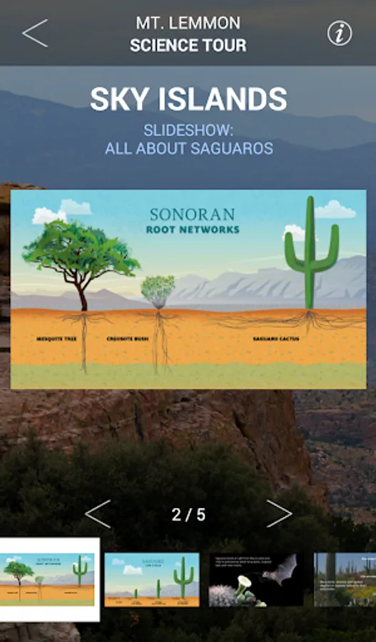 Along with the audio tour, the app also includes slideshows and videos that visualize the science. Through science stories, the Mt. Lemmon Science Tour brings the wonders of this region alive.