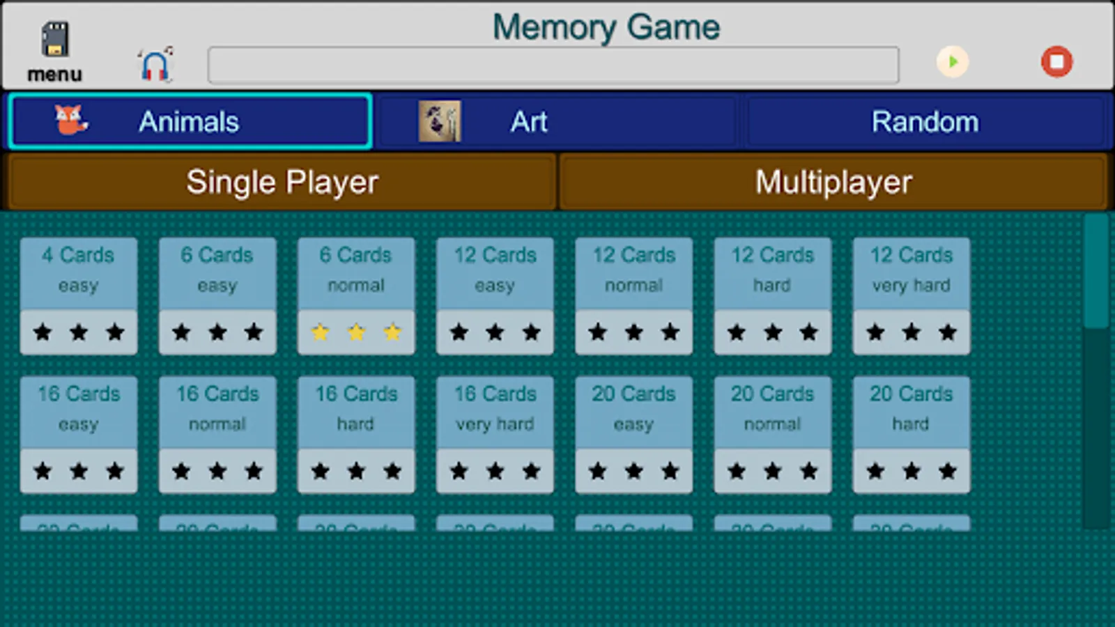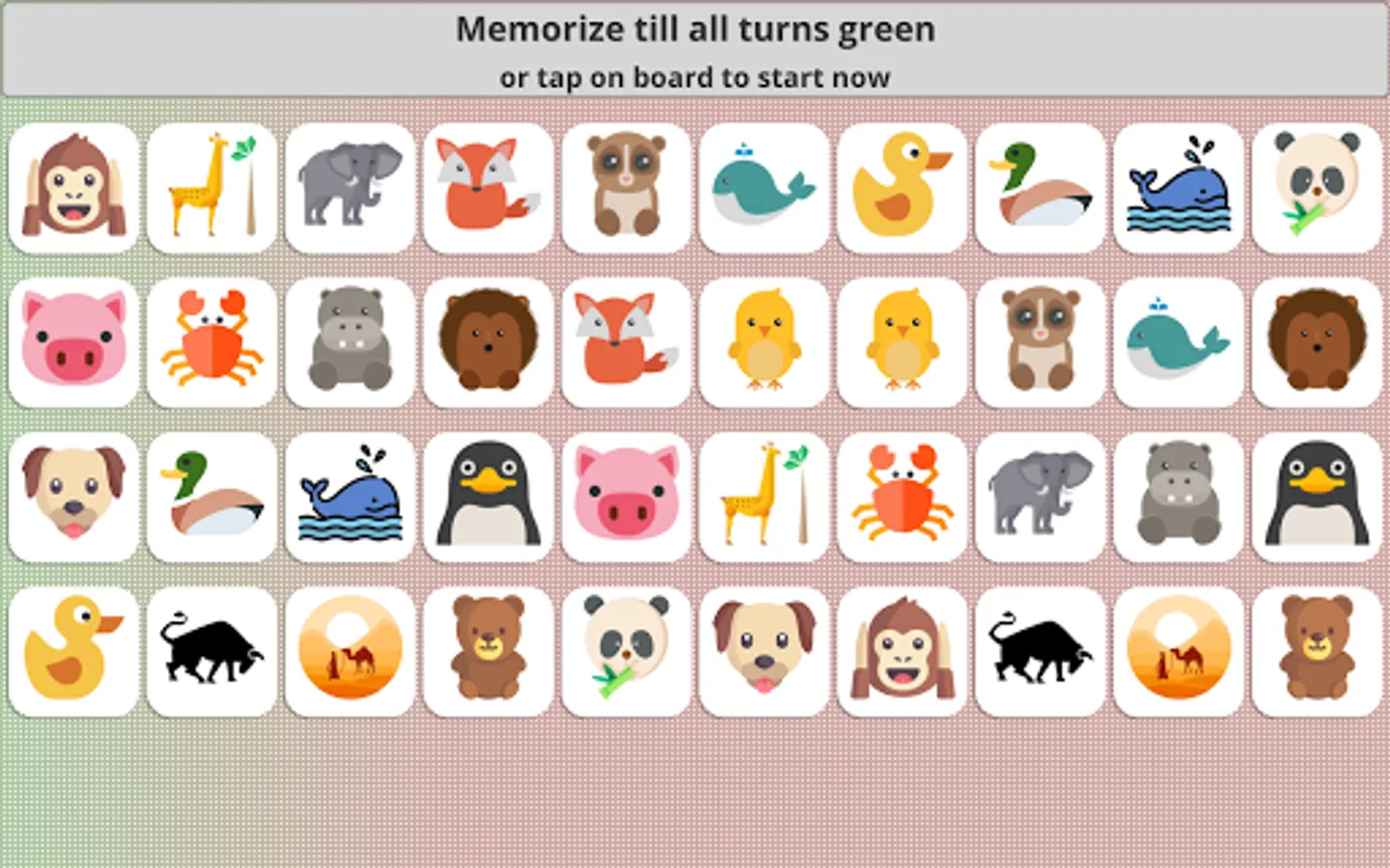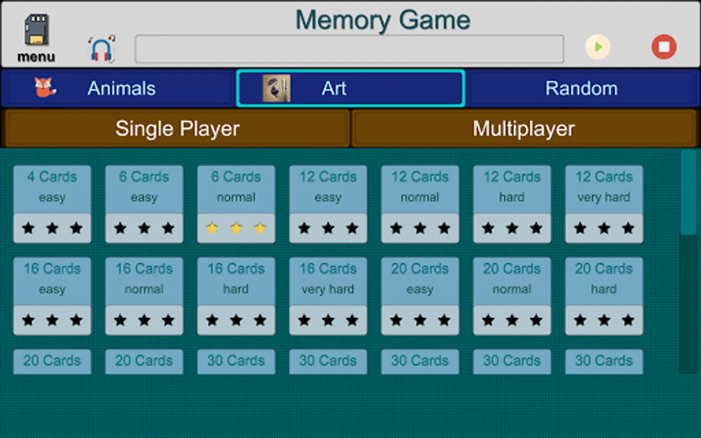 In Multiple Player mode, take turns to flip the cards, remember them, pair them up in your turn to score and get an extra chance. It is fun.