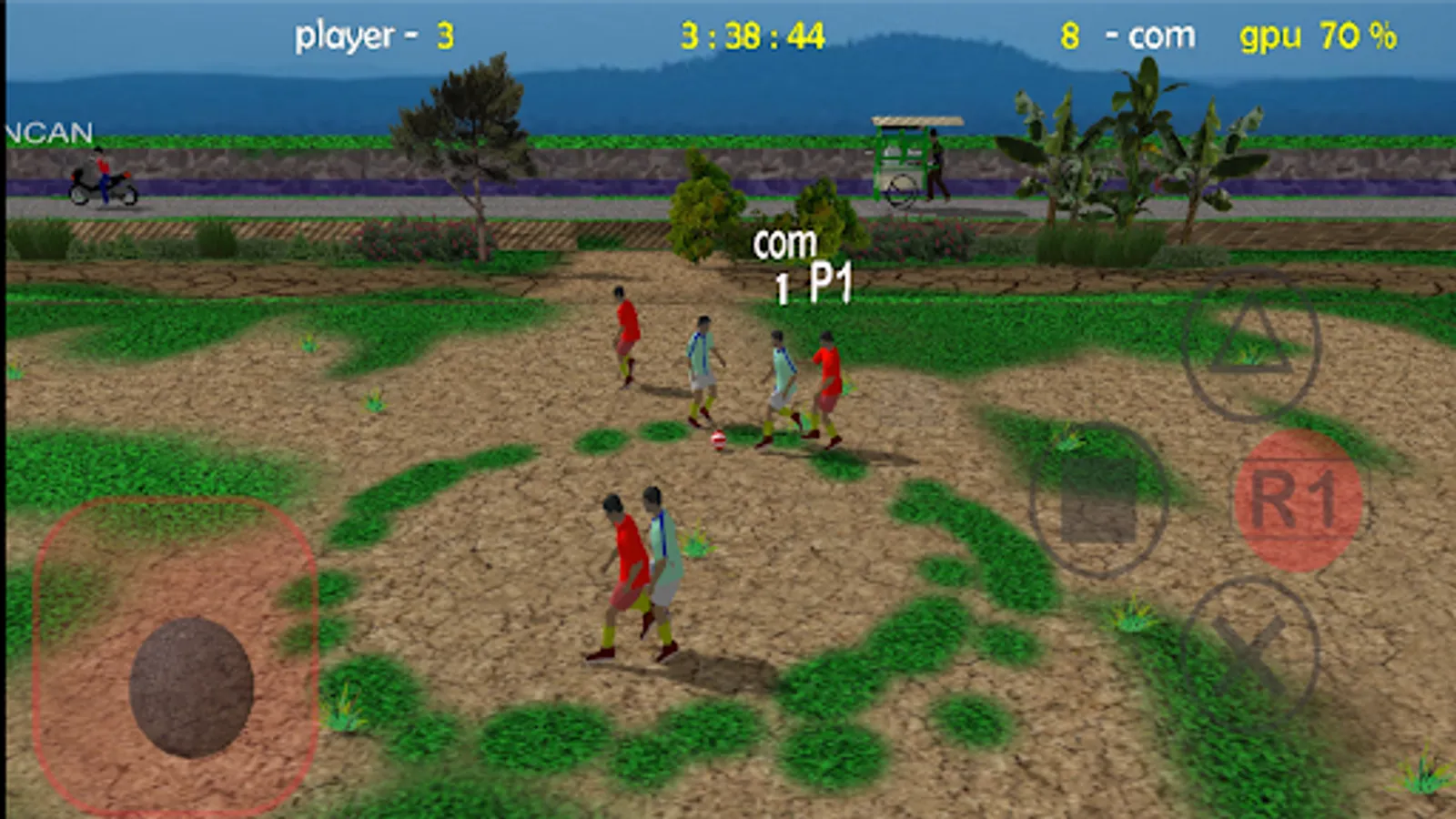an indoor soccer game that is usually done indoors, but this time we are setting it in the middle of a rice field in a village..