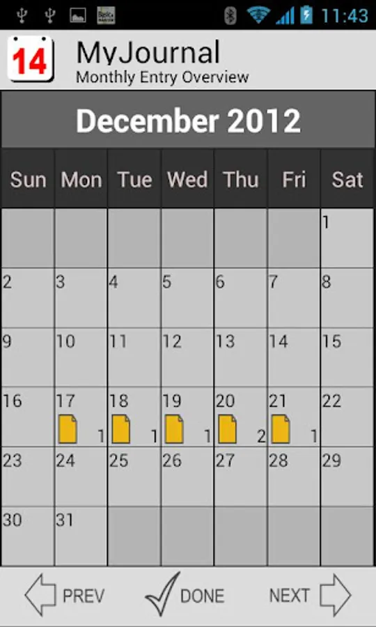 You can also tap on the calendar icon to see a monthly overview for quickly finding an entry by date or making a new entry for both the past and the future.