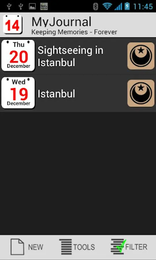 MyJournal is a daily diary for your mobile device. You can create as many entries as you like and have them available at your fingertips.