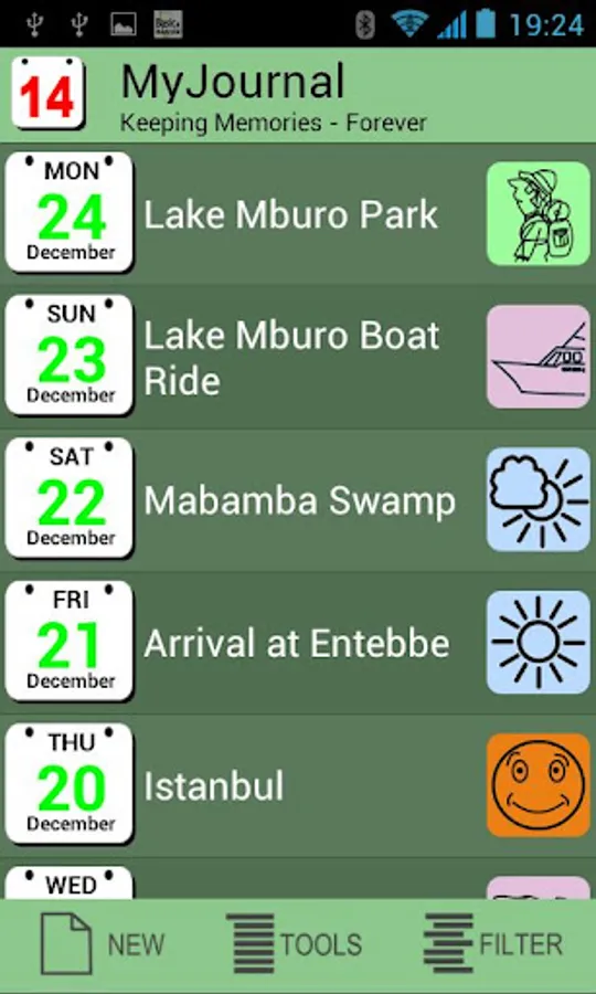 MyJournal Lite is a daily diary for your mobile device. In this Lite version you are limited to 30 simultaneous entries and some export functions are not available.
