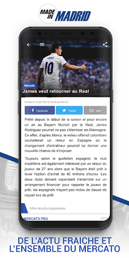 To follow all the info of the Madrid club for free on your mobile, thanks to the application made in Madrid (Info, Analysis, Interviews, Mercato games Summaries).