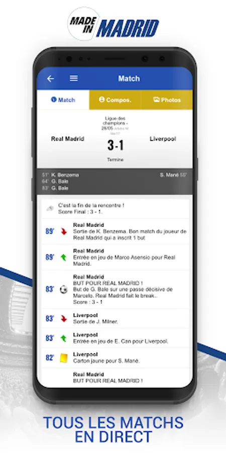 Get all results Madrid live live (Compos, Actions, Stats, Photos).
