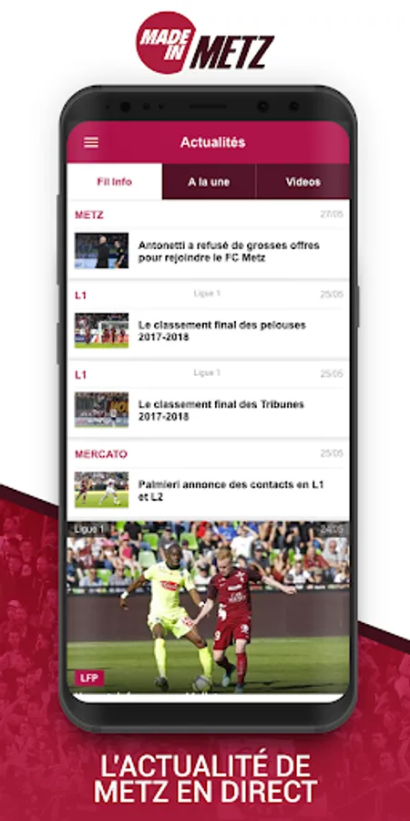 To follow all the info for free on your mobile Garnets, through the application Made in Metz (News, Analysis, Interviews, Mercato, games Abstracts).