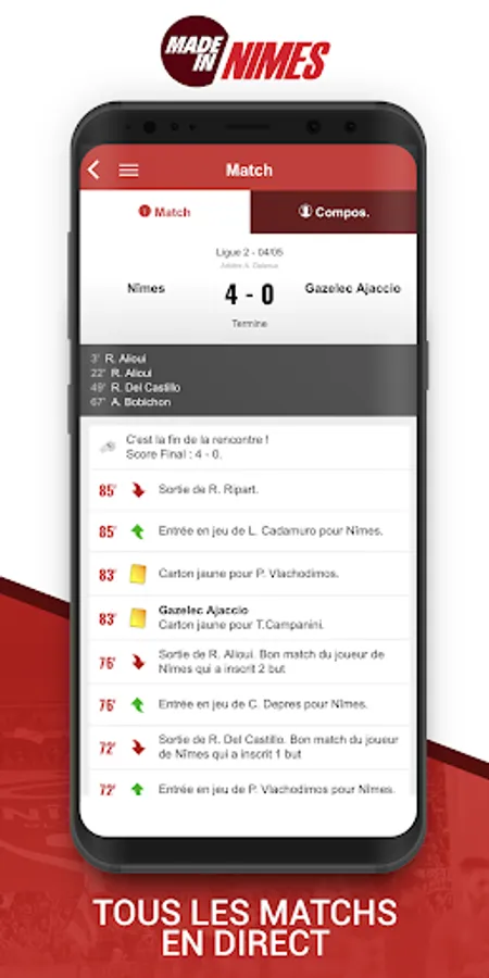 Get all results from Nimes live live (Compos, Actions, Stats, Photos).