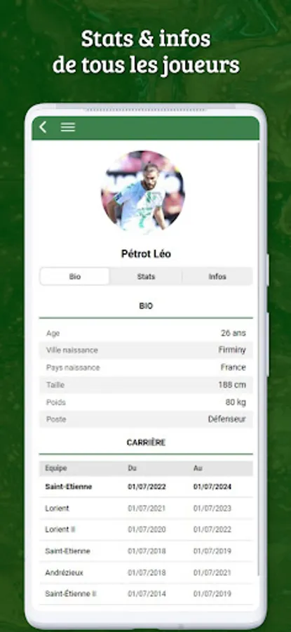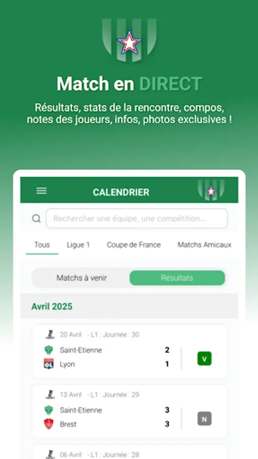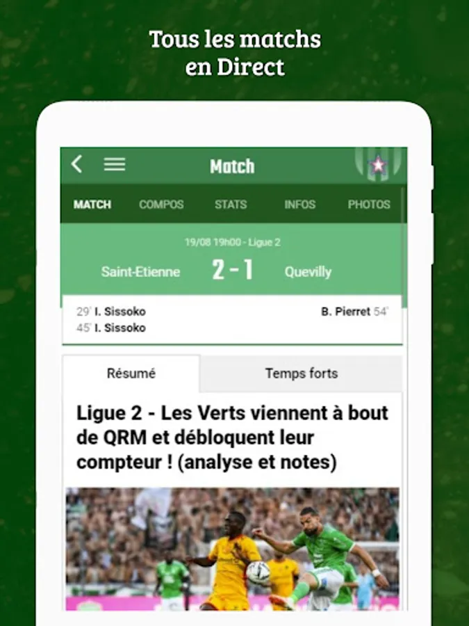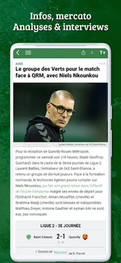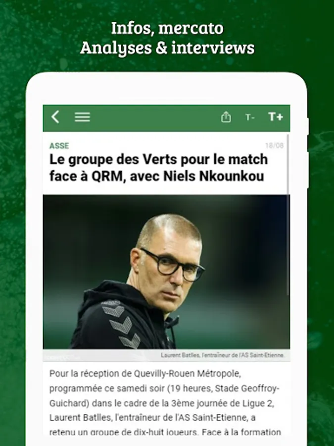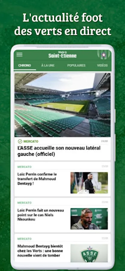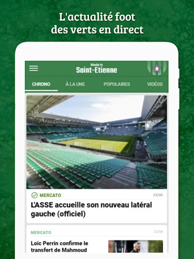 Foot Saint-Etienne (unofficial application) is the essential mobile application for all Greens fans. Follow AS Saint-Étienne news in real time: transfer window, transfers, results, match summaries, line-ups, interviews… everything is there, at your fingertips!