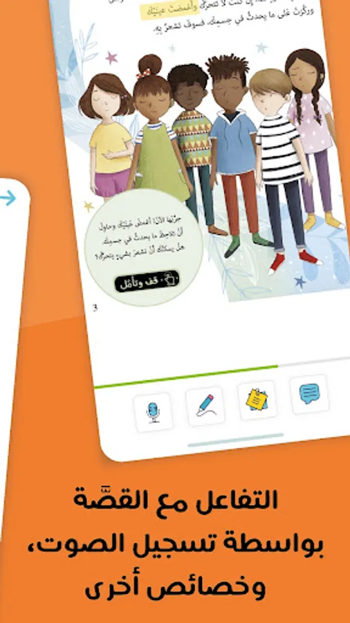 The books are professionally audio-recorded under the supervision of language experts, and the readable text is shaded word for word so that the child hears the word and sees it shaded at the same time. Students can also take notes, highlight texts, record their voice, answer comprehension questions at the end of the story, and share what they have accomplished with their teachers and mentors.