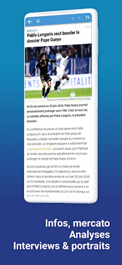 Follow all the news from Olympique de Marseille for free on your mobile, thanks to the MadeInMarseillais application (News, Analysis, Interviews, Mercato, Match summaries).