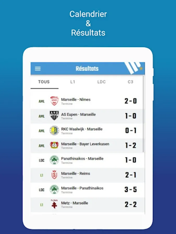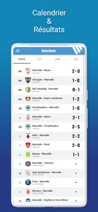 Wherever you are, stay connected 24 hours a day to the news and results of your favorite team: OM.