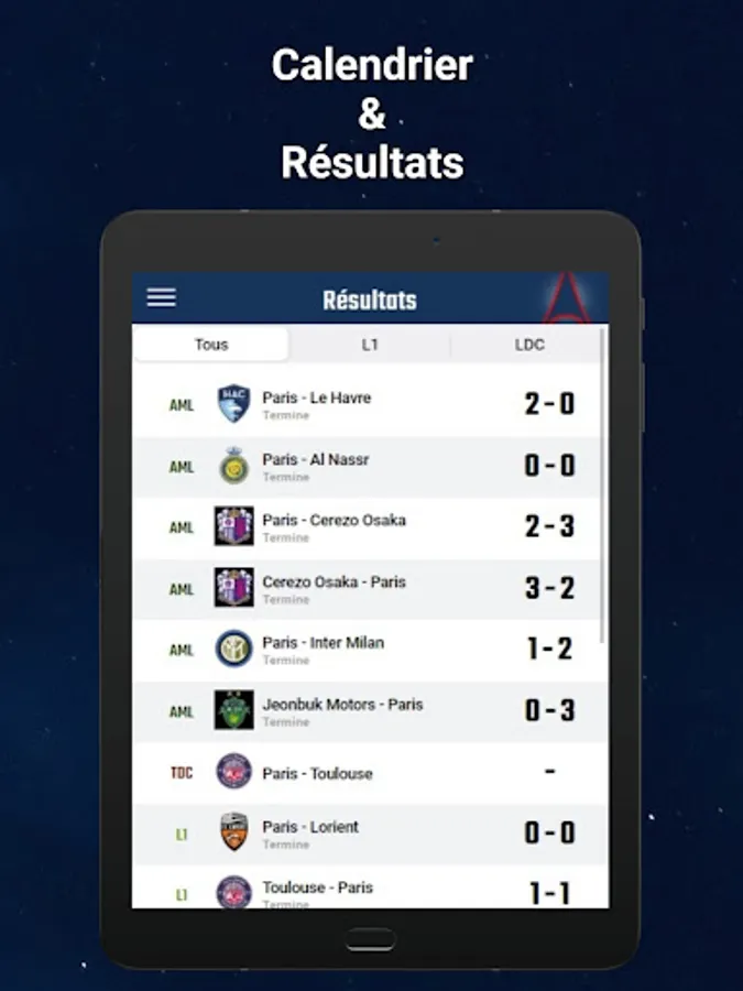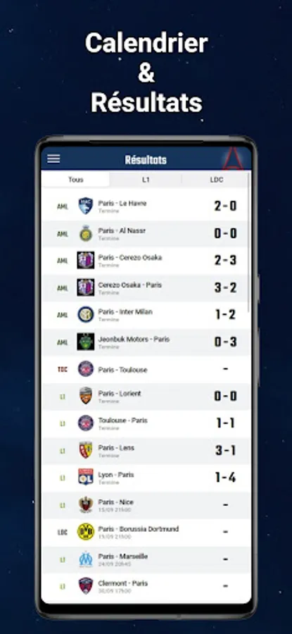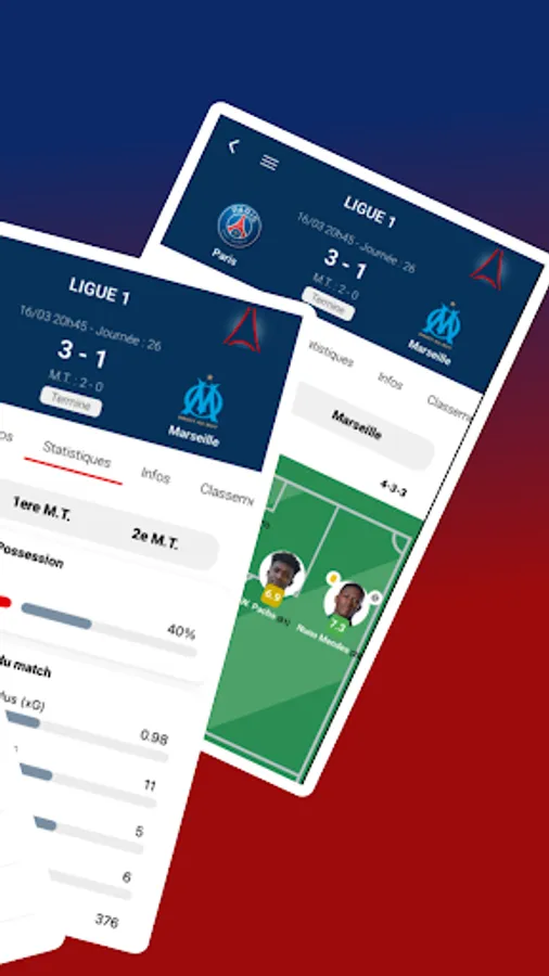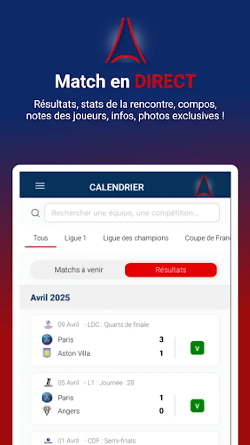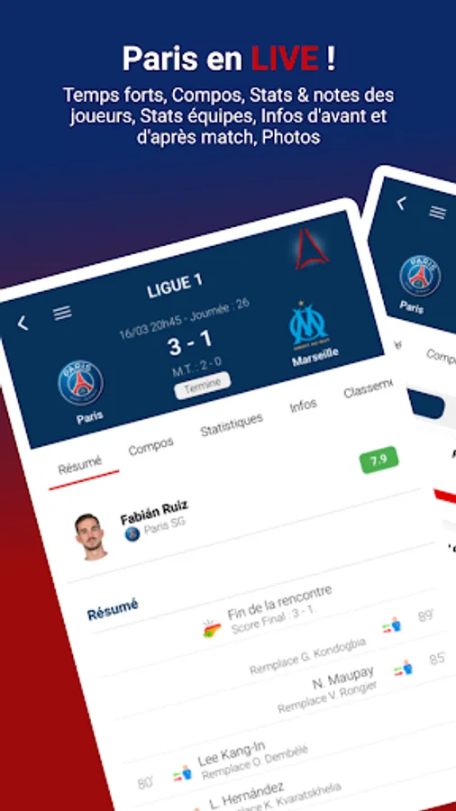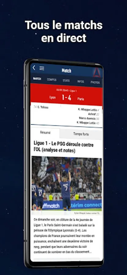 - Live monitoring of PSG matches: live scores, line-ups, stats