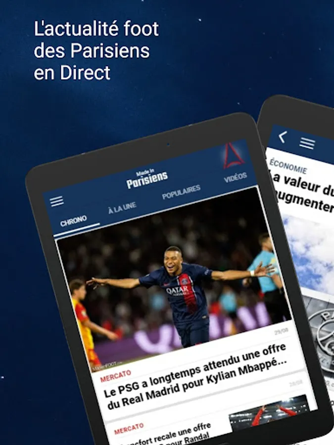 MadeInParisiens (unofficial application) is the essential mobile application for all Paris Saint-Germain fans. Follow all the PSG news in real time: transfer window, transfers, results, interviews, match summaries, line-ups and much more!