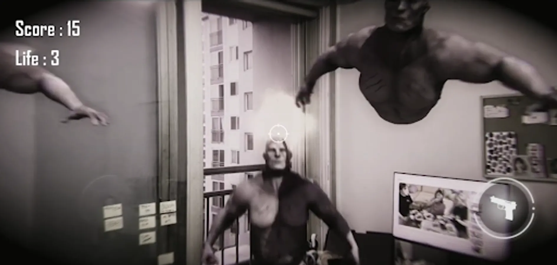 당신의 방 안에 괴물들이 나타납니다! 괴물들을 총으로 무찔러 악몽에서 깨어나세요! 괴물에게 3번 부딪히면 죽습니다!