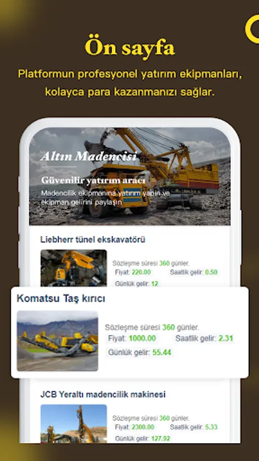 Altın Madencisi, madende çok miktarda profesyonel altın madenciliği ekipmanı satın aldı ve madencilik ekipmanını yatırım ürünlerine böldü.