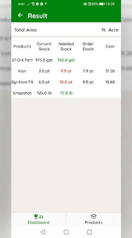 This is based on the minimum quantities you set, or the total number of square footage you have to treat based on usage rates you determined earlier. Calculate your final results to see your total product shortage, and how much that product will cost.
